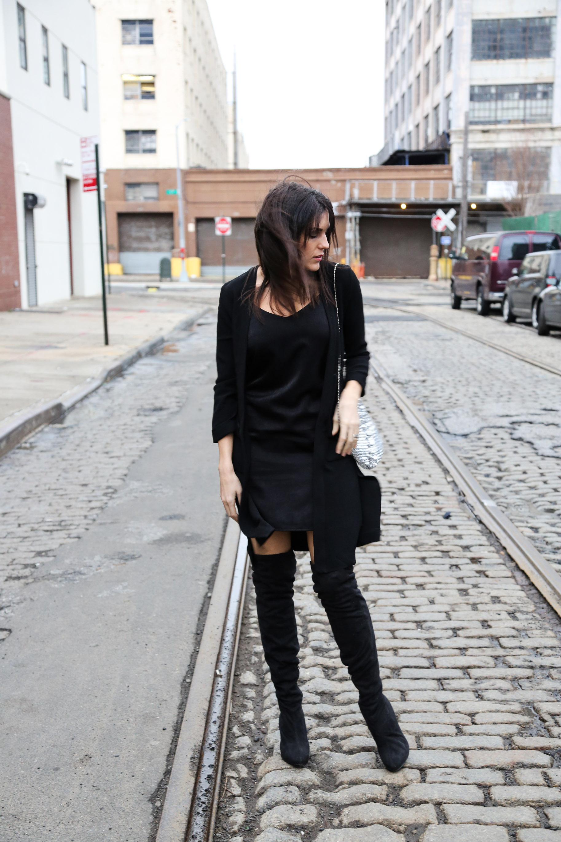 H&M Slip Dress & Jacket || Similar OTK Boots || Vintage Bag (similar option here or here)