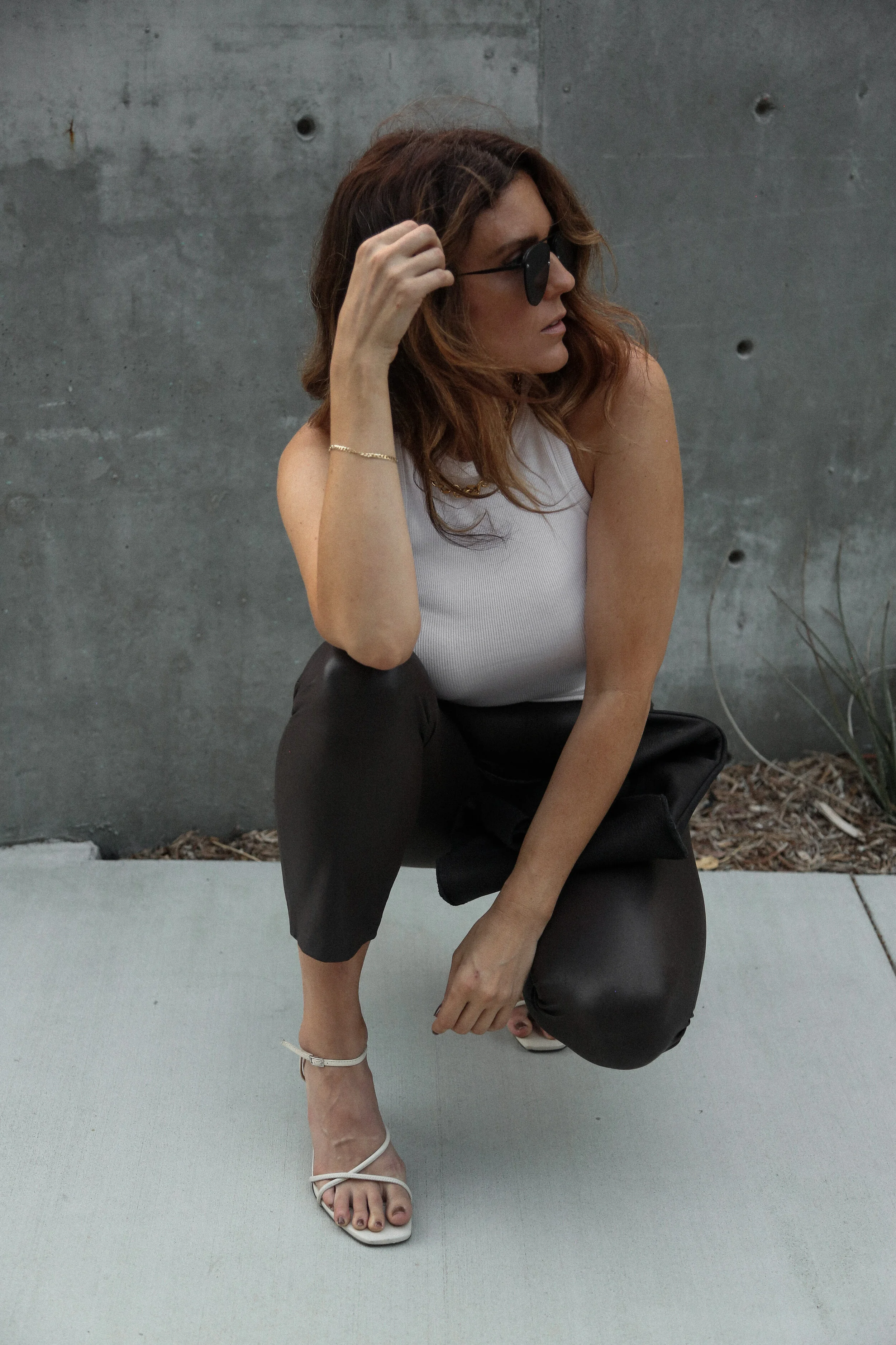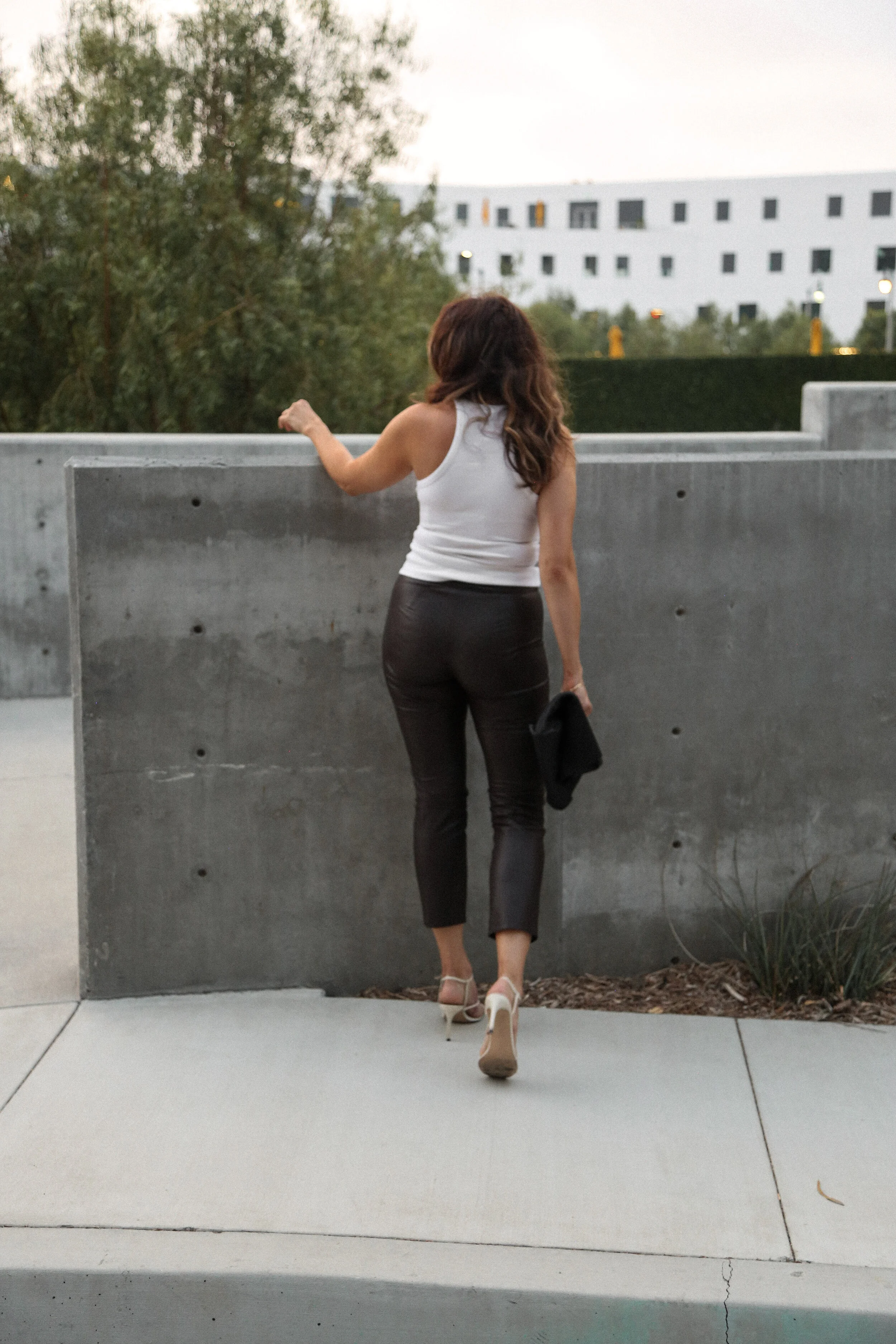Another thing? Getting dressed up, even if it means I’m all dressed up with no where to go. Which is pretty much what happened with this outfit. I recently got these vegan brown leather pants in from Brochu Walker and I’ve been itching to take them out on the town, but with no set plans in place, I settled for taking them out for a spin around a parking lot instead (ha!). Gotta do what you gotta do, right?!
