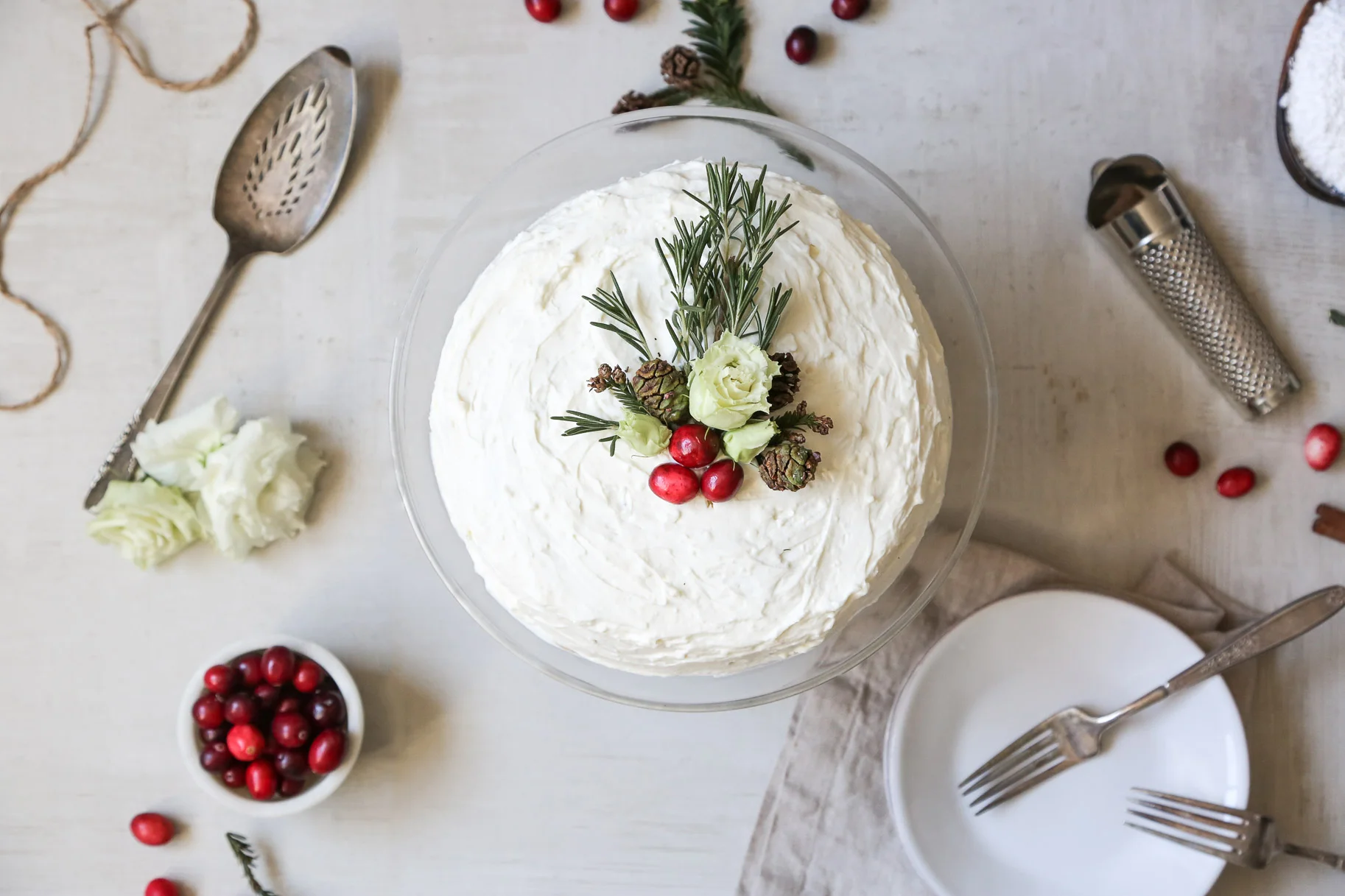 Also, if you're thinking you've seen this cake before, don't worry...you aren't having a case of Monday brain fog. You have indeed seen this cake before, specifically in my last post. After my first crepe cake was such a hit, I knew it was just what I needed to make when Adri asked me to whip something up for our Airweave shoot. Of course, I had to put a little festive spin on it (because winter) and, instead of decorating it with big, bright flowers, I went with more simple, rustic winter woodland decor. The cranberry cake came out beautifully, if I do say so myself, and tasted even better. So much so, in fact, that I knew I couldn't keep the recipe for myself.