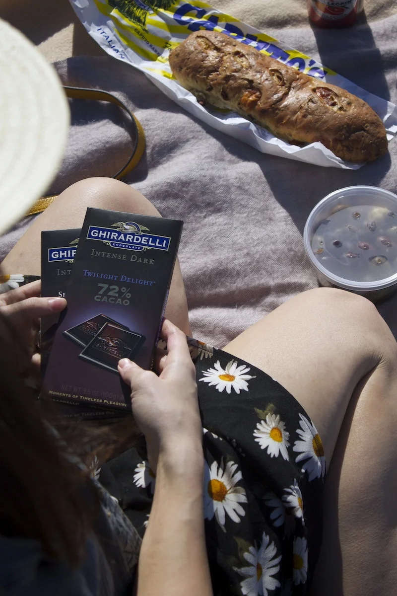 If you'd like some more ideas on how to enjoy your Ghirardelli chocolate, head on over to their website for recipes, party ideas, and even a list of the perfect pairings (FYI, this is very handy for picnic planning). But before you head to their site, I'd love to know how you enjoy pairing your chocolate. Is it a midday escape from work, or a treat before bed? Do you enjoy it with wine or coffee, or is their a special person or event that you love to have chocolate with? Since I'm sure you are just as obsessed with chocolate as I am, Ghirardelli and I would love it, if you would upload a picture of your perfect chocolate pairing to Instagram using the hashtag #IntenseDark. And don't worry if you don't have Instagram, you can simply uploaded a picture to the Ghirardelli Intense Dark Chocolate Photo Landing Page.