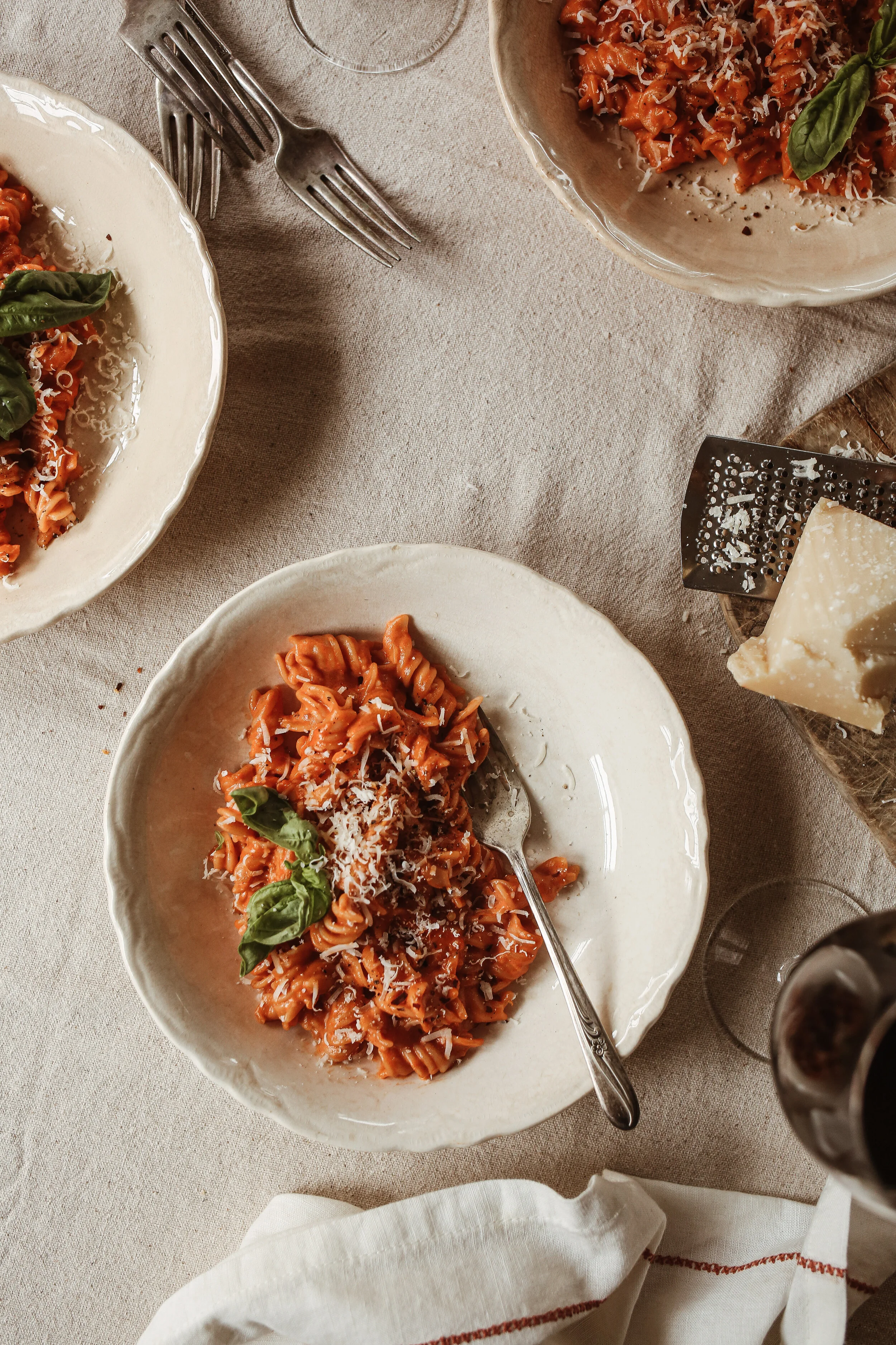 In fact, it’s probably one of my favorite comfort foods, if not favorite foods. And Jon & Vinny’s is probably one of the best I’ve ever eaten at a restaurant. So much so that I decided I needed to recreate it at home. Their recipe is pretty easy to find online, and it really is as delicious as it is in their restaurant. But me being me, and me being Italian, naturally, I thought I could make it even better (lol). So with some (ok, maybe quite a few) tweaks here and there, the recipe below is what I arrived upon a few years ago, and is now the only one I make when a spicy fusilli craving hits. In fact, it’s so good, we’ve basically stopped ordering it out (sorry J&V’s). Dave says it just doesn’t compare, and, I mean, like I know he’s biased and all, but also I kind of have to say he’s not wrong on this one.