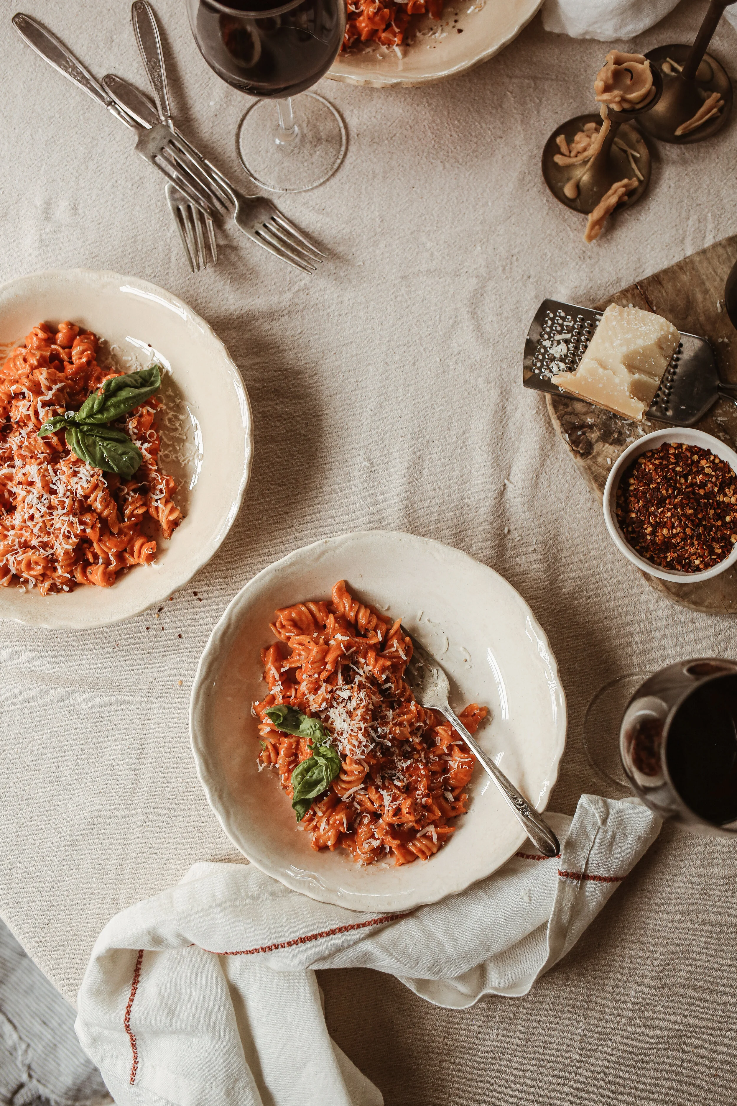 There are two secrets to what makes this so decadently delicious. First, you can thank the copious amounts of dairy products. The more butter the better, right?! Secondly, the pasta water comes through as a strong contender for MVP of the spicy fusilli recipe. The starch from the pasta that is left behind in the water assists the sauce in becoming its thickest and creamiest self. And while some insist that this only works if you’re using full gluten pasta (which, of course, you absolutely can do), I swear there is no difference and it’s just as delicious when I make this with GF rice pasta (which is what I tend to use most). I mean, were talking about a sauce loaded with cream and cheese. Like, I’m pretty sure you can’t go wrong here.