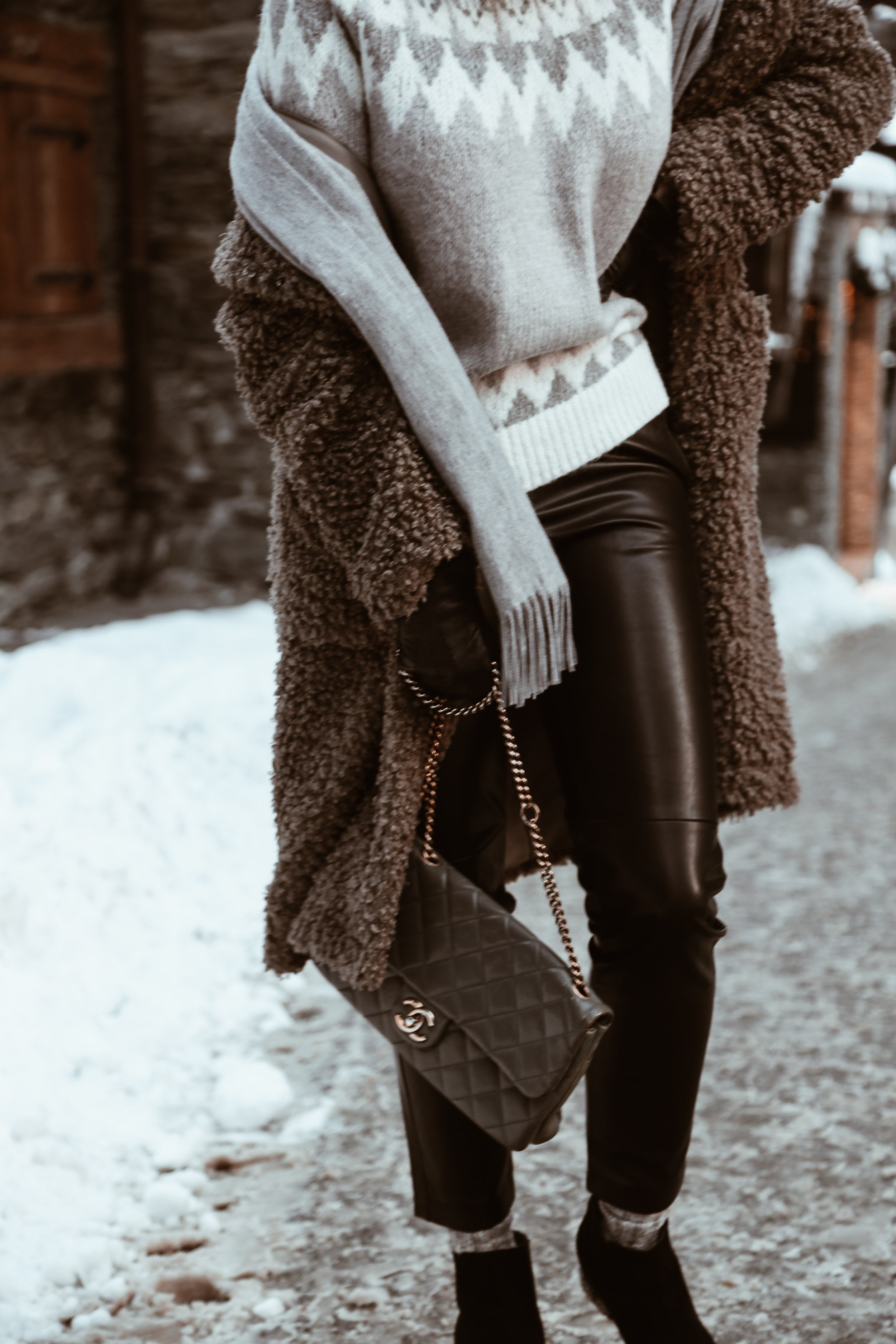 Wool or cashmere sweaters, the thicker and cozier the better (alpine print, chunky knit, turtleneck)